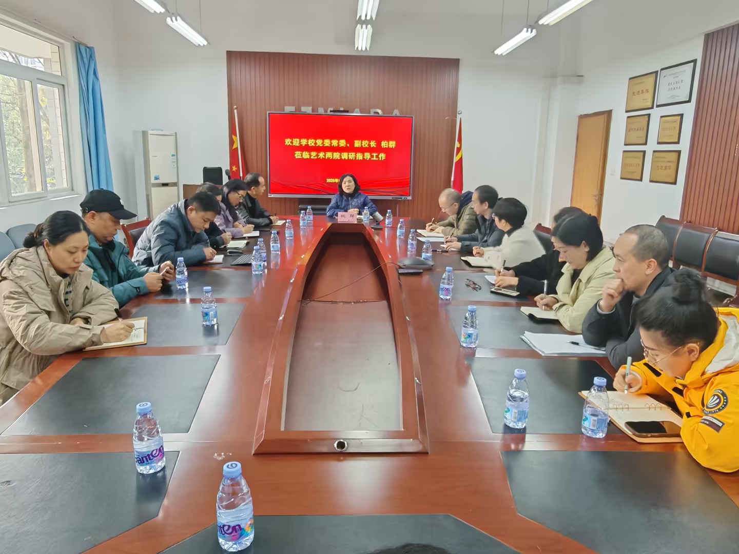 2025-12-22212月18日下午,学校党委常委、副校长柏群到艺术两院调研指导全面从严治党工作,艺术两院全体班子成员、专职组织员、科级干部、系主任、党支部书记及其他重点岗位人员参加了调研座谈。会上,柏群听取了艺术两院关于全面从严治党工作开展情况的汇报,对艺术两院在加强政治建设、压实主体责任、严明纪律规矩等方面取得的阶段性成效给予肯定,并就持续深化全面从严治党、推动学院事业高质量发展提出三点具体要求:一是要强化理论武装,筑牢思想根基。要坚持以习近平新时代中国特色社会主义思想为指导,把深入学习贯彻党...