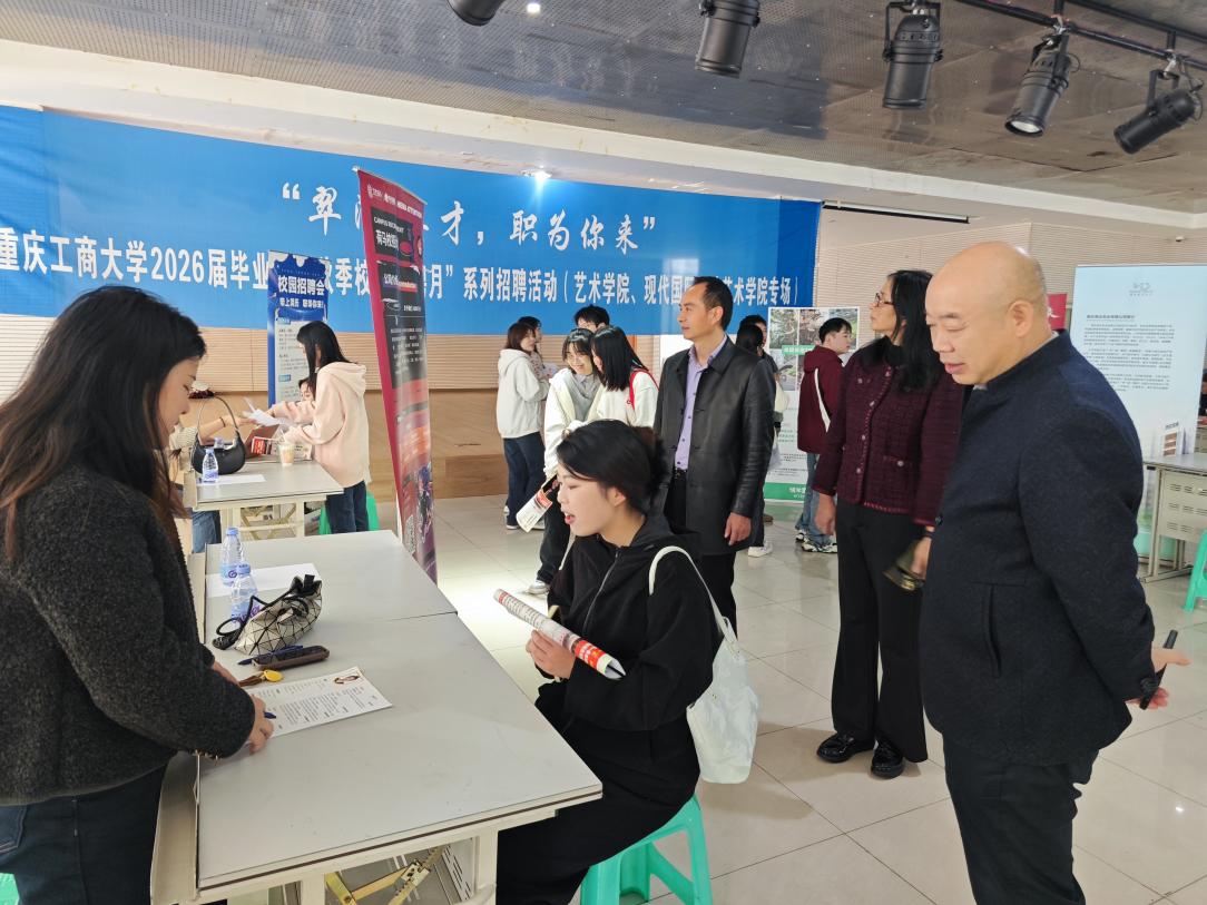 2025年11月13日上午9:30,“翠湖英才,职为你来”重庆工商大学2026届“秋季校园招聘月”系列招聘活动(艺术两院专场)在重庆工商大学兰花湖片区馨园食堂三楼大厅顺利举办。本次招聘会精准聚焦艺术类学子就业需求,吸引了近50家优质企业进场揽才。