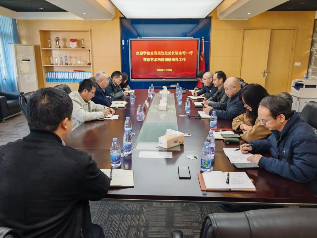 11月28日,学校发展规划处处长骆东奇、副处长王洪、郑月龙、学科建设科科长李英娇一行来艺术两院就学校“十五五”事业发展规划编制工作开展专题调研,学院党政领导班子成员、科室主任参加了调研座谈会。