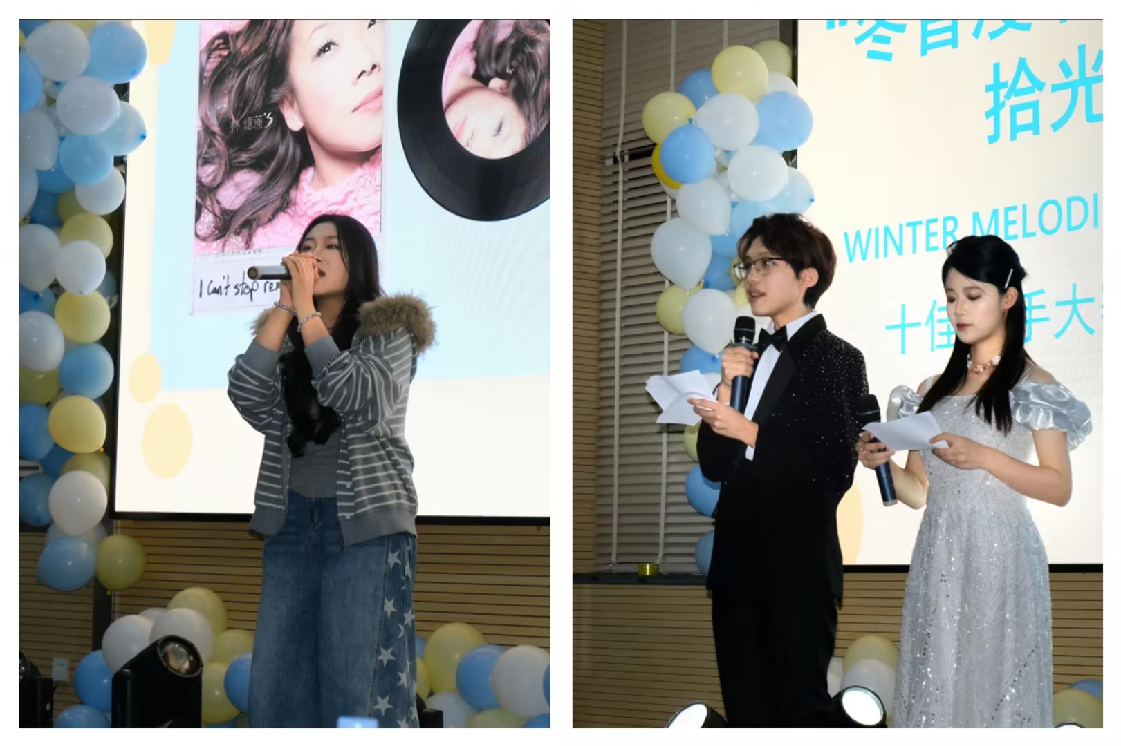 下半场的舞台更为精彩夺目,选手们卸下束缚、尽情释放,舞台感染力全面升级。每一首演唱都饱含深情、直击人心,让现场观众沉浸式感受音乐的魅力。经过激烈比拼,25 级视传三班郭义琪同学获得一等奖,25 级服装 1 班张悦、24 级视传 2 班刘语嫣荣获二等奖,25 级航服 2 班刘祥、25 级航空 4 班郭欣妍、23 级视传 5 班张宁瑄斩获三等奖。
